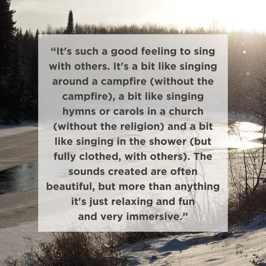 Our singing community is non-performing and non-auditioned. We sing together for the pure goodness of it. By gathering weekly, we care for ourselves, our wider community, and the Earth. All songs are taught by ear. All voices are welcome and no experience is required. Show up exactly as you are!